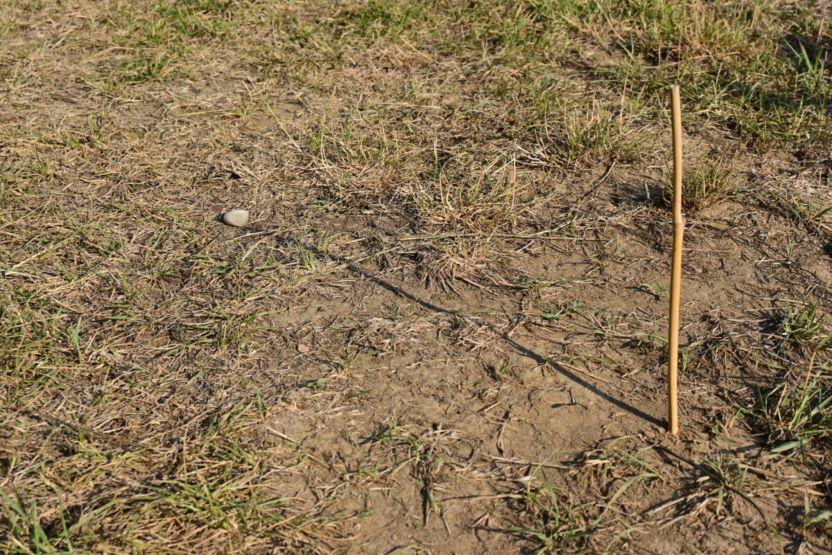 A fél óra letelte után az árnyék kicsit elvándorol, de pont ezt akartuk. Az elmozdult árnyék végére lehelyezzük a második kavicsot is.