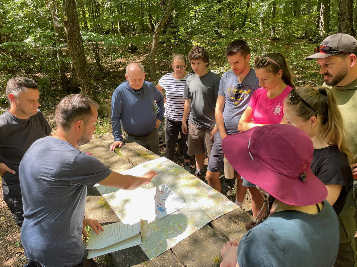 Ezután egy könnyed kincskeresésre indultunk a környéken. A feladat az volt, hogy egy kézzel rajzolt térkép alapján meg kellett keresni 6 kis dobozkát. Minden dobozkában betűket tettünk, amiket a megfelelő sorrendbe rakva egy földrajzi nevet kaptunk.