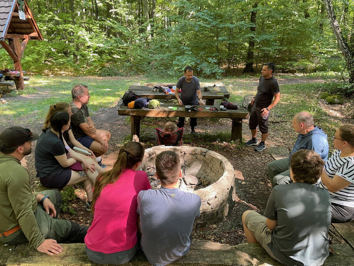 Ebéd után egy picit szárazabb, de fontos téma következett: hol szabad vadkempingeznünk, mit engednek a magyar jogszabályok és mit nem. Átvettük a fontosabb tudnivalókat a tűzgyújtással kapcsolatban is.